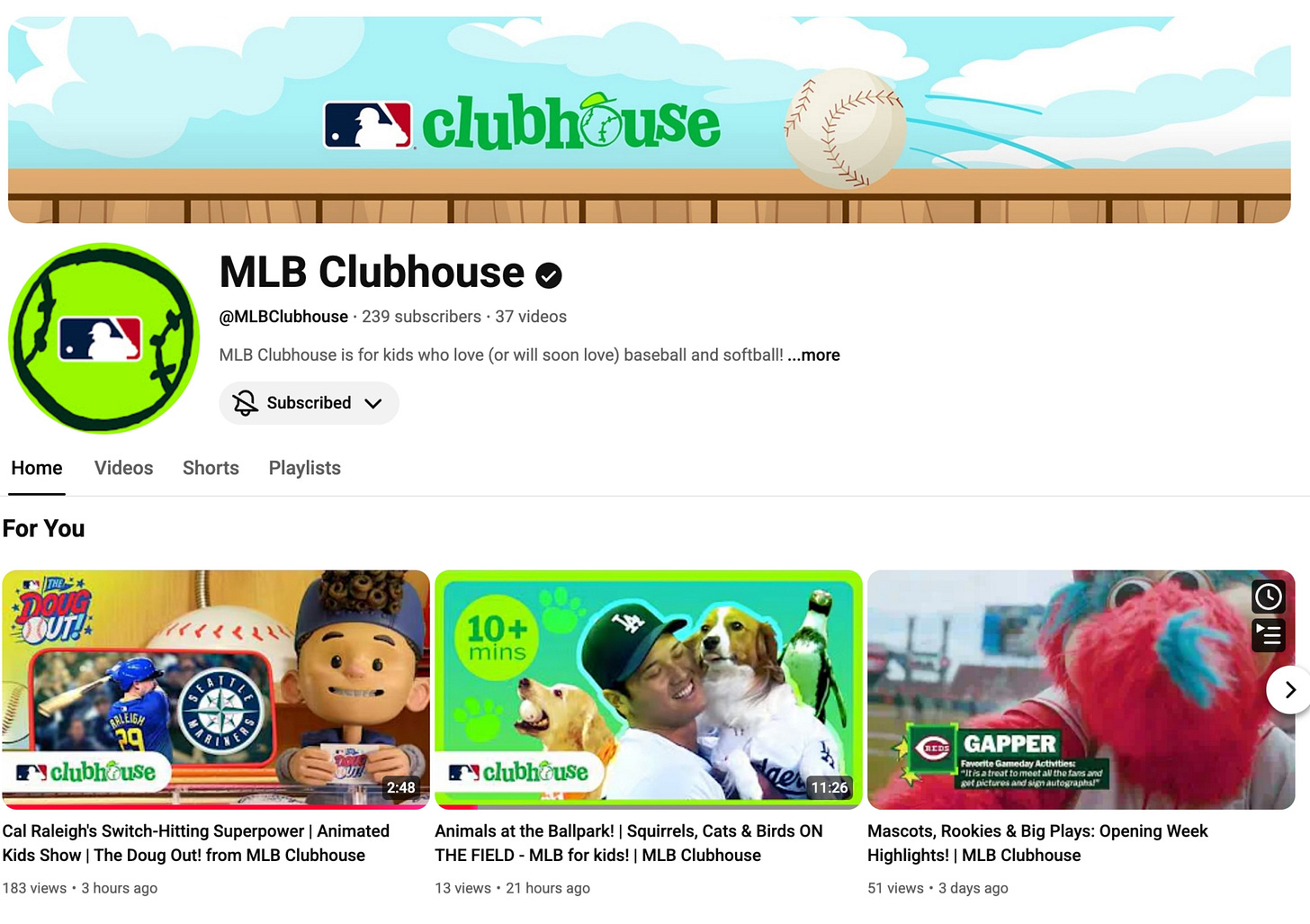 MLB Clubhouse is a dedicated kids YouTube channel launched with multiple original series across animation, player storytelling, art and educational content. HURRAH!
